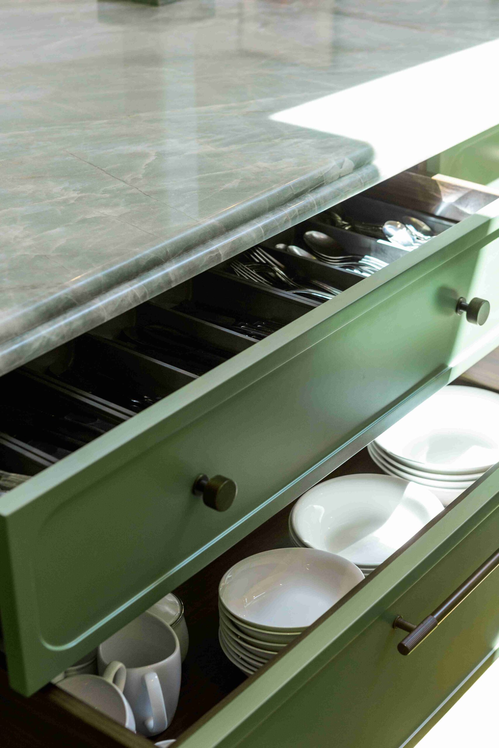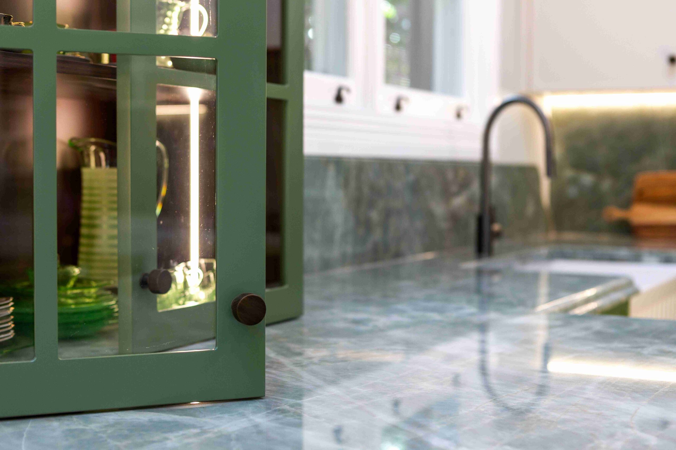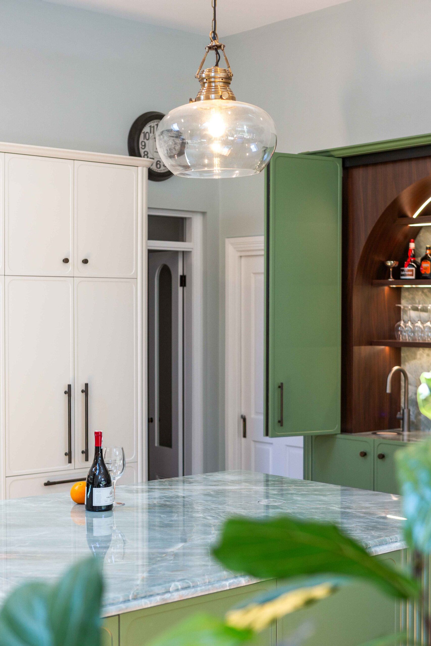 Modern functionality is seamlessly integrated with heritage style, including a Turner & Hastings butler’s sink and a Häfele sensor bin, bringing everyday convenience into a traditionally inspired space. Thoughtful storage solutions ensure no space is wasted, even the kickboards have been transformed into hidden push-to-open storage, maximising usability without compromising design.